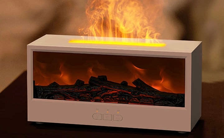 GlowHaven™ uses ultrasonic mist + warm LED lighting to create a hyper-realistic flame glow.